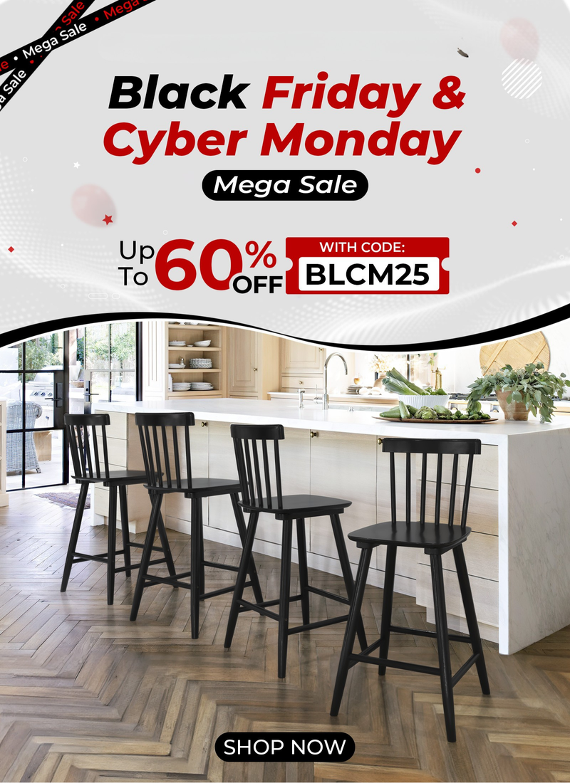 Windsor Wood Barstool Set — Counter Height Barstools with Spindle Back — Bigger Seat for Kitchen Island