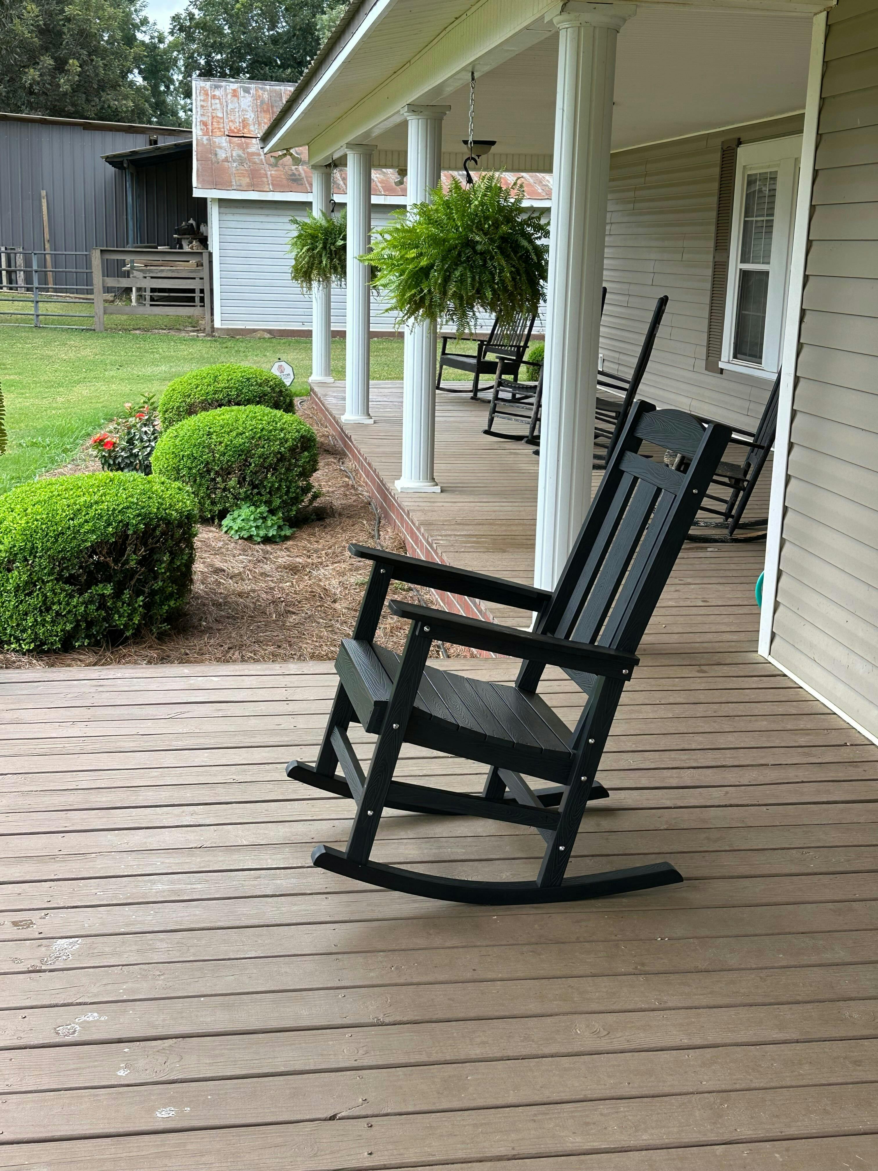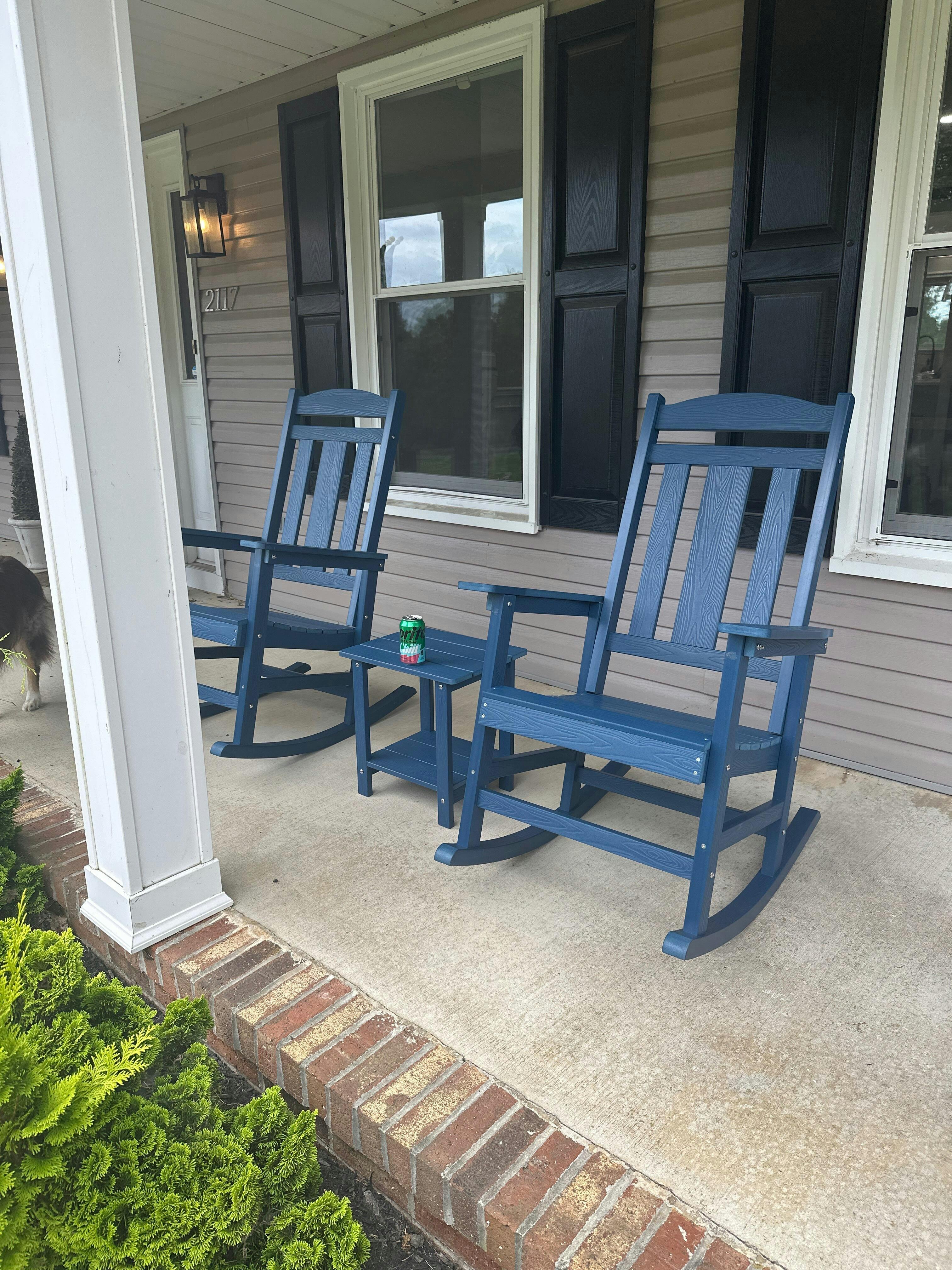 - Sturdy & Durable Structure: Recycled poly material of the rocking chairs looks like real wood, but stronger and more durable. It won't chip, peel, or rot.