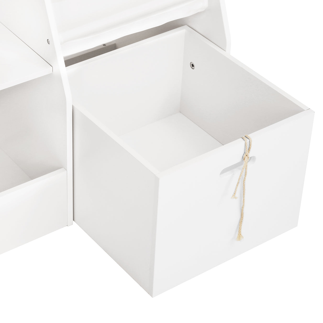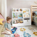 - 4 in 1 Mutifunctional Kids Bookcase: This children's bookshelf features a 3-tier sling bookshelf, a toy shelf with wheels, a fixed toy bin, and 5 storage shelves; Ideal for organizing books, toys, and essentials while keeping the room neat and tidy