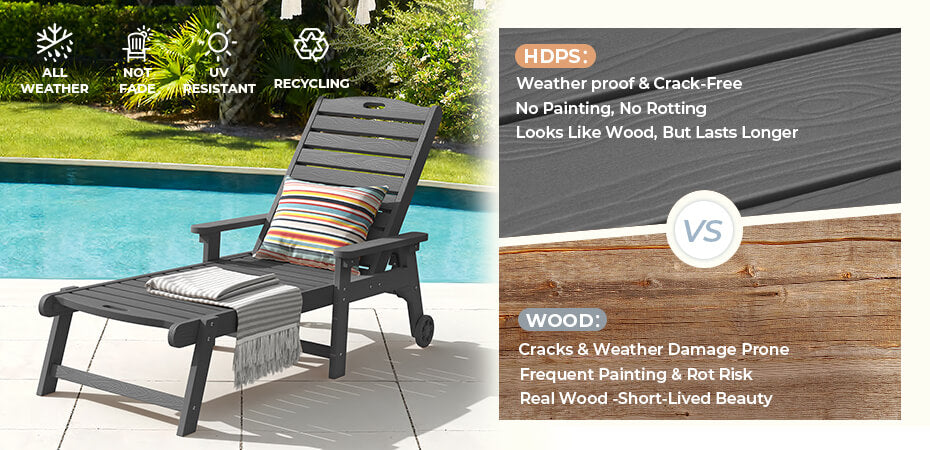 - Quality & Durable Material: The outdoor lounge chair is built to last with its high-quality poly lumber material that resists fading, cracking, and peeling, which is very durable and can withstand the test of outdoor environments.