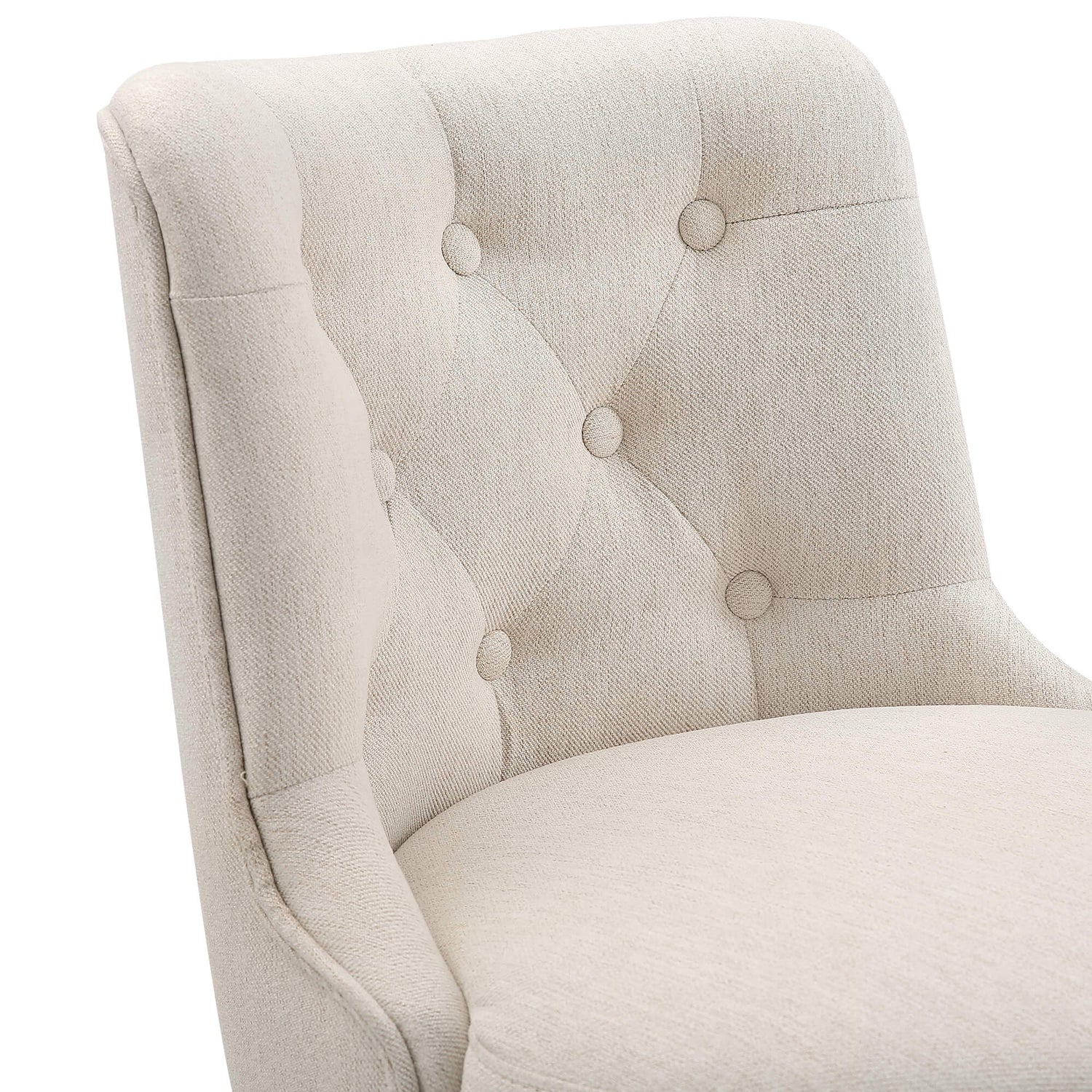 - Comfortable Design: Experience utmost comfort while adding a touch of elegance to your space. The classic tufted design exudes sophistication, while the rolled edge trim adds a refined touch to the overall aesthetics. The round metal footrest not only enhances comfort but also serves as an attractive ornamentation. The comfortable back curve supports your posture, and the adjustable leveling feet not only provide stability on any surface but also protects your floors from scratches.