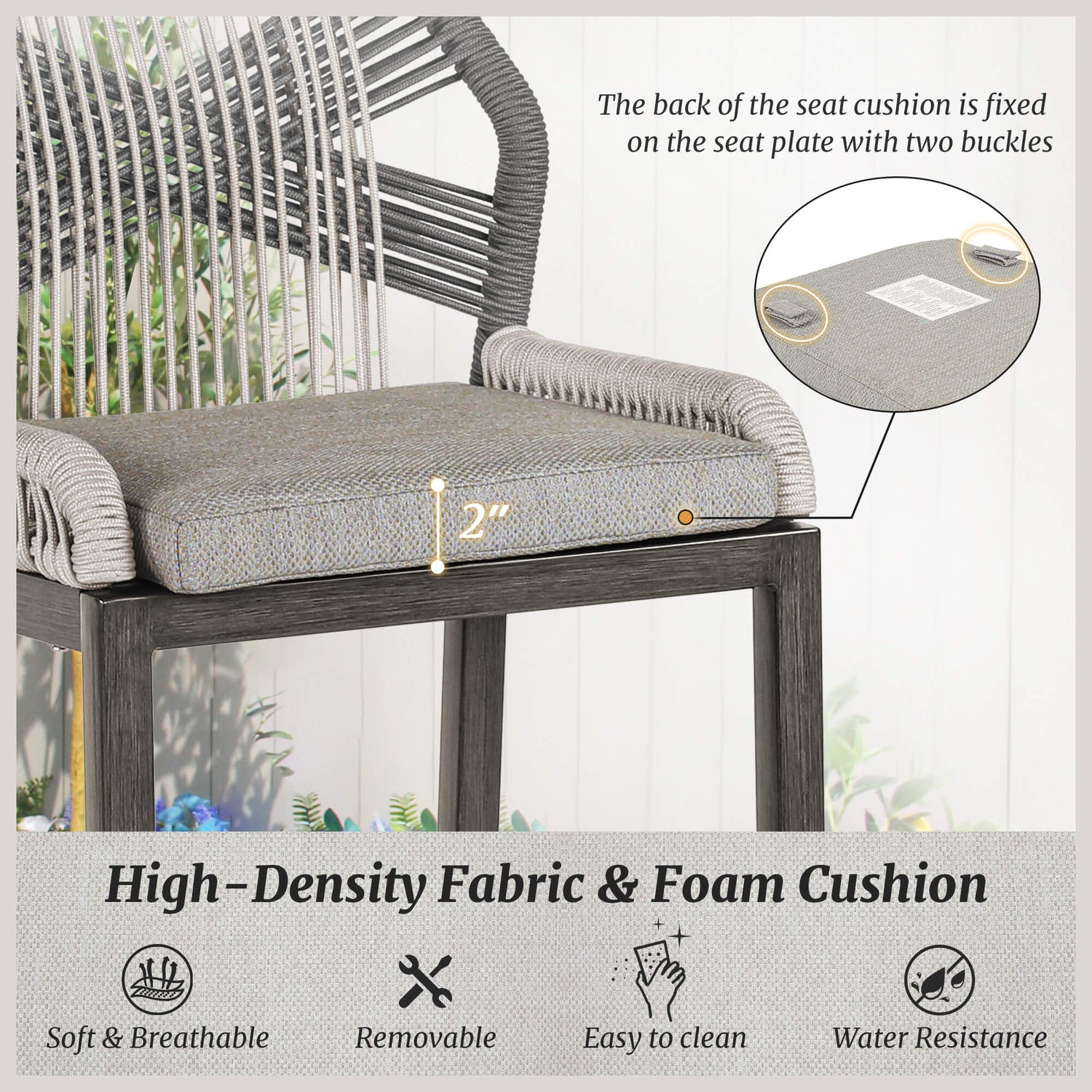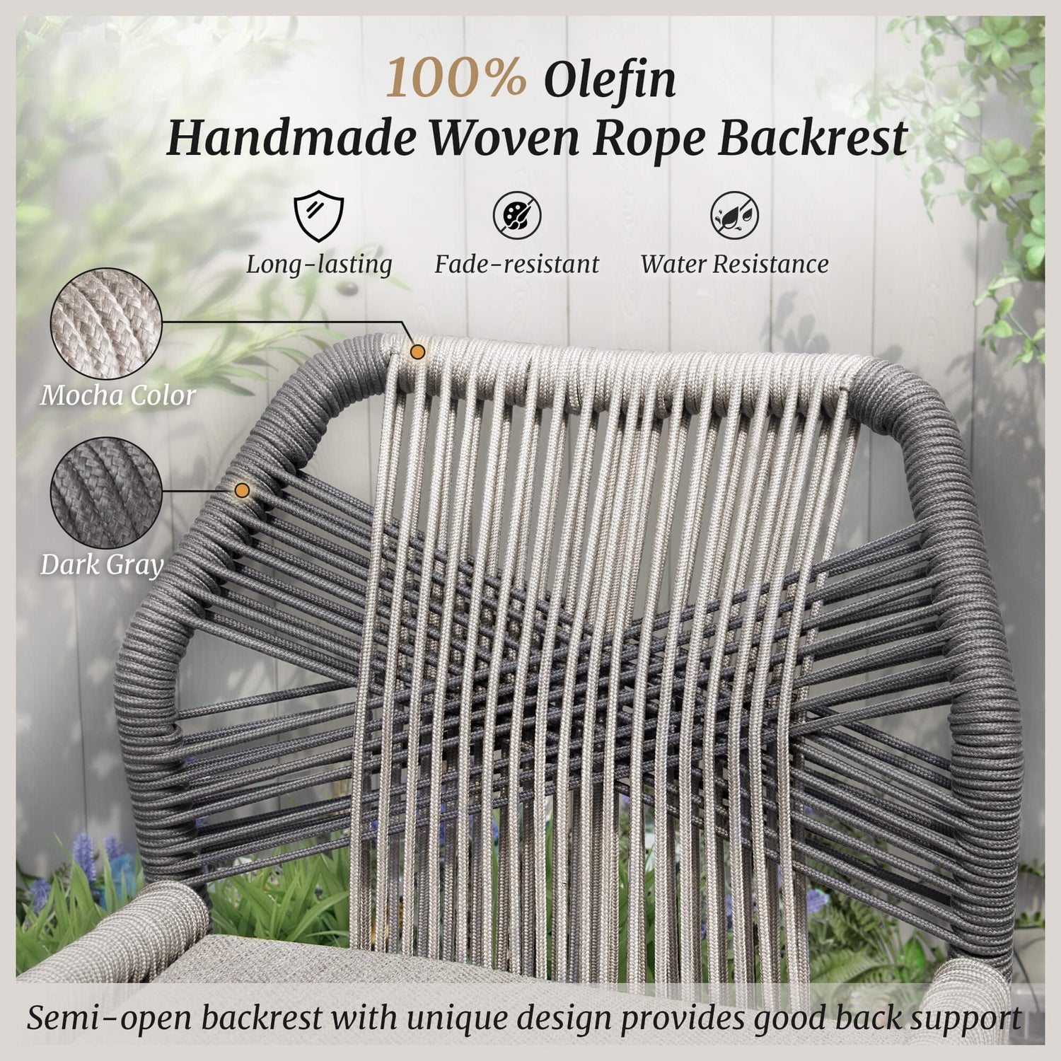 - Handmade Woven Rope Backrest: Features a unique semi-open design that offers excellent back support, with long-lasting, fade-resistant, and water-resistant properties.