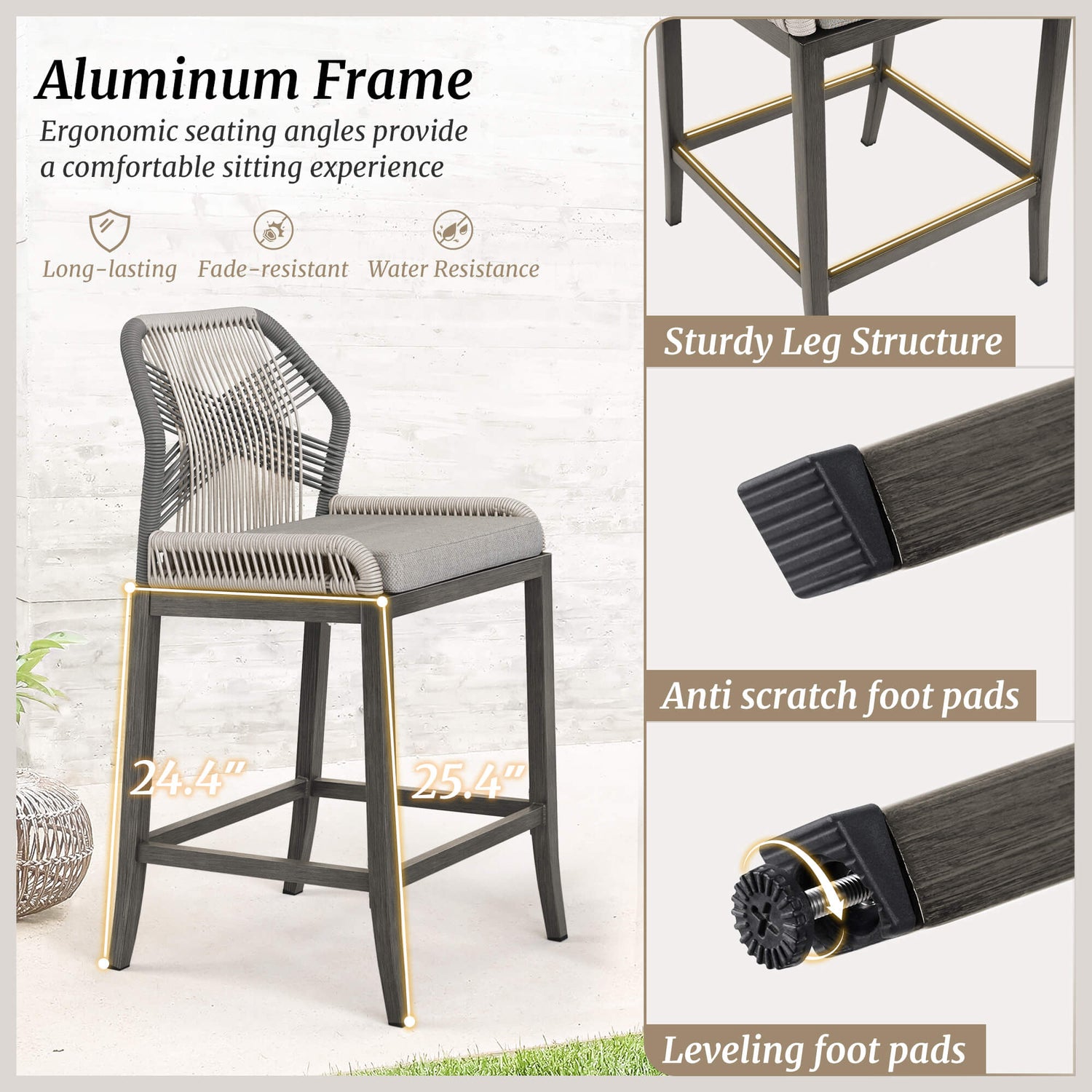 - Ergonomic Aluminum Frame: Designed with comfortable seating angles, a sturdy leg structure, and anti-scratch foot pads for stability and floor protection, all while being fade-resistant and water-resistant.