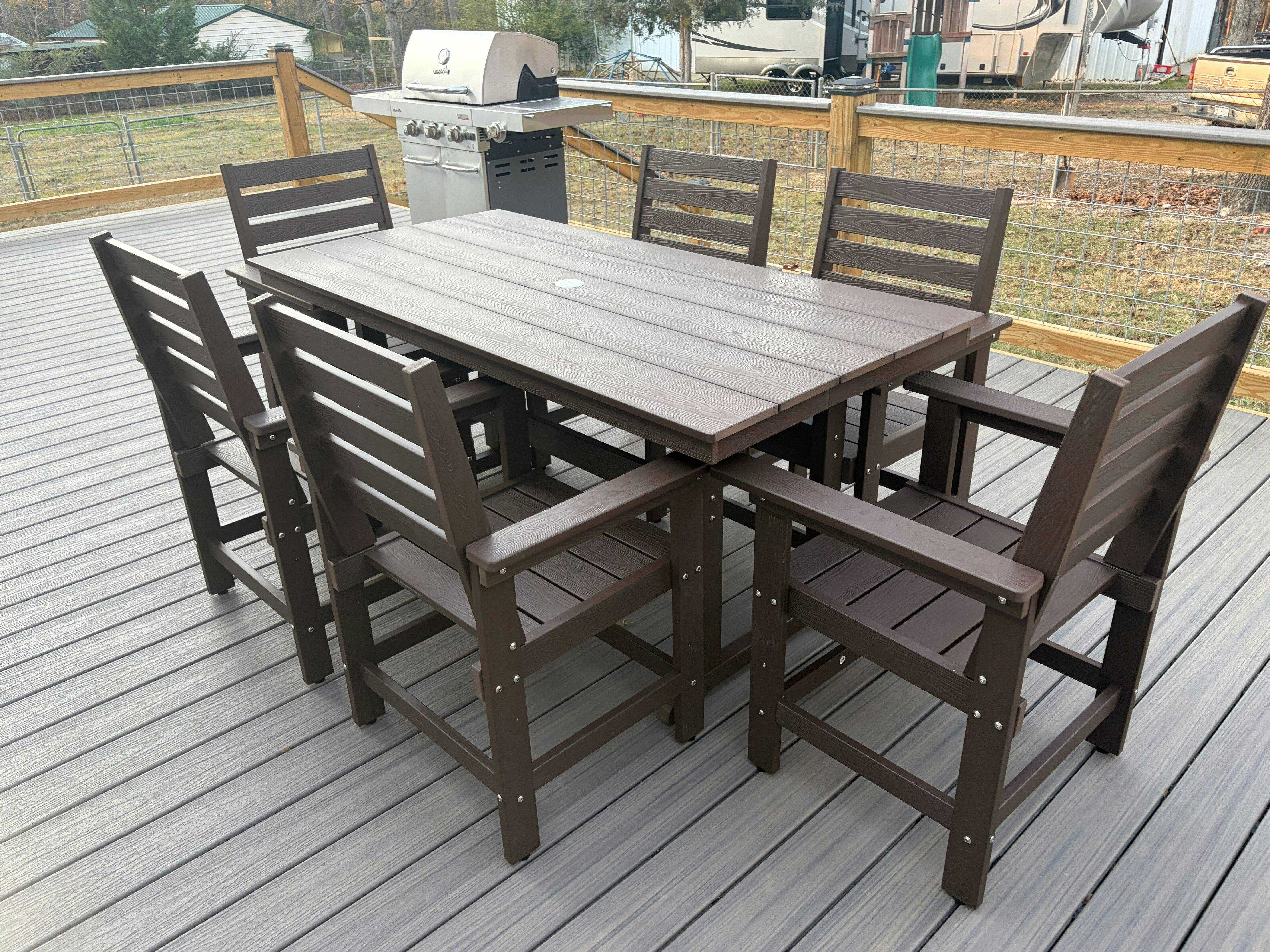- All-Weather Applicable: The outdoor dining sets are made of HDPS material and 304 stainless steel screws. They are waterproof, sunproof, and windproof, ensuring durability without fading or peeling.