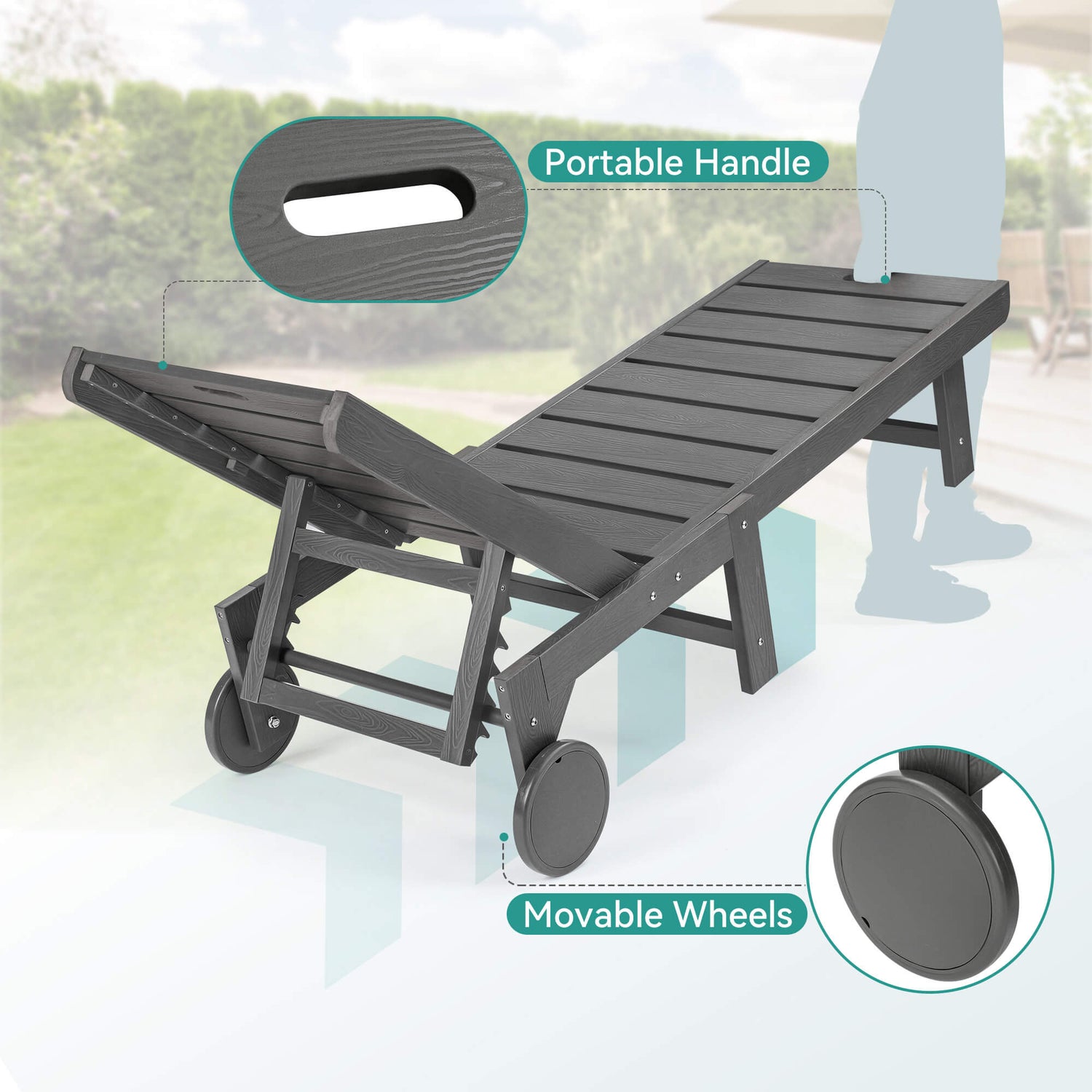 Hayley Outdoor Chaise Lounge Chair with Wheels