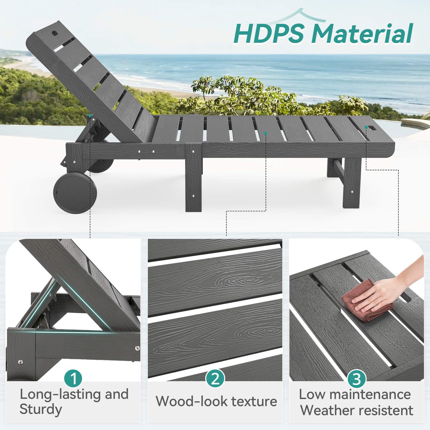 - Widely Used: This lounge chair has wheels for easy movement between the poolside, beach, backyard, or garden, letting you fully enjoy the outdoors.