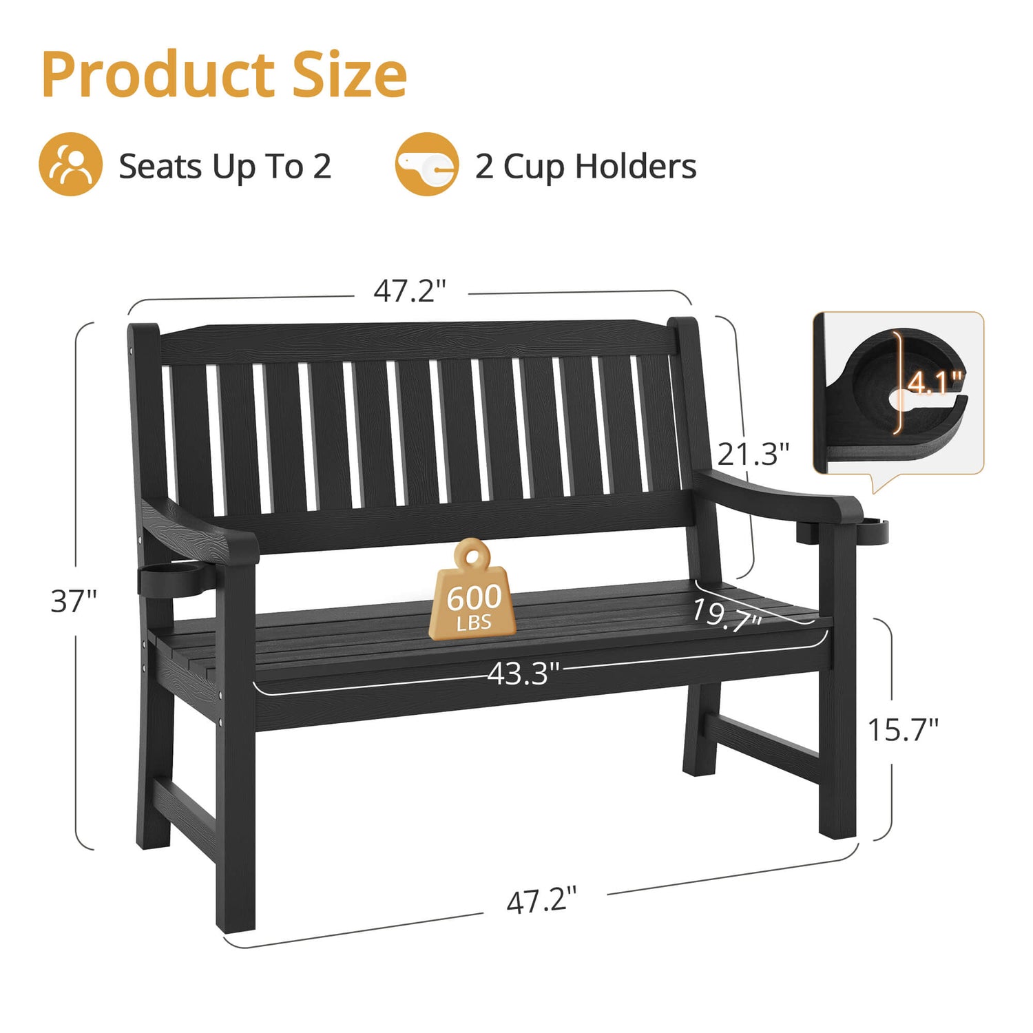 - Recycled and Durable Material: The outdoor bench is made of recycled materials HDPS,which simulates real wood, making the product durable and beautiful. This material has high performance of weather resistance, suiting in all kinds of weather including hot sun, heavy snow, and strong winds and leaving low maintenance work to you.