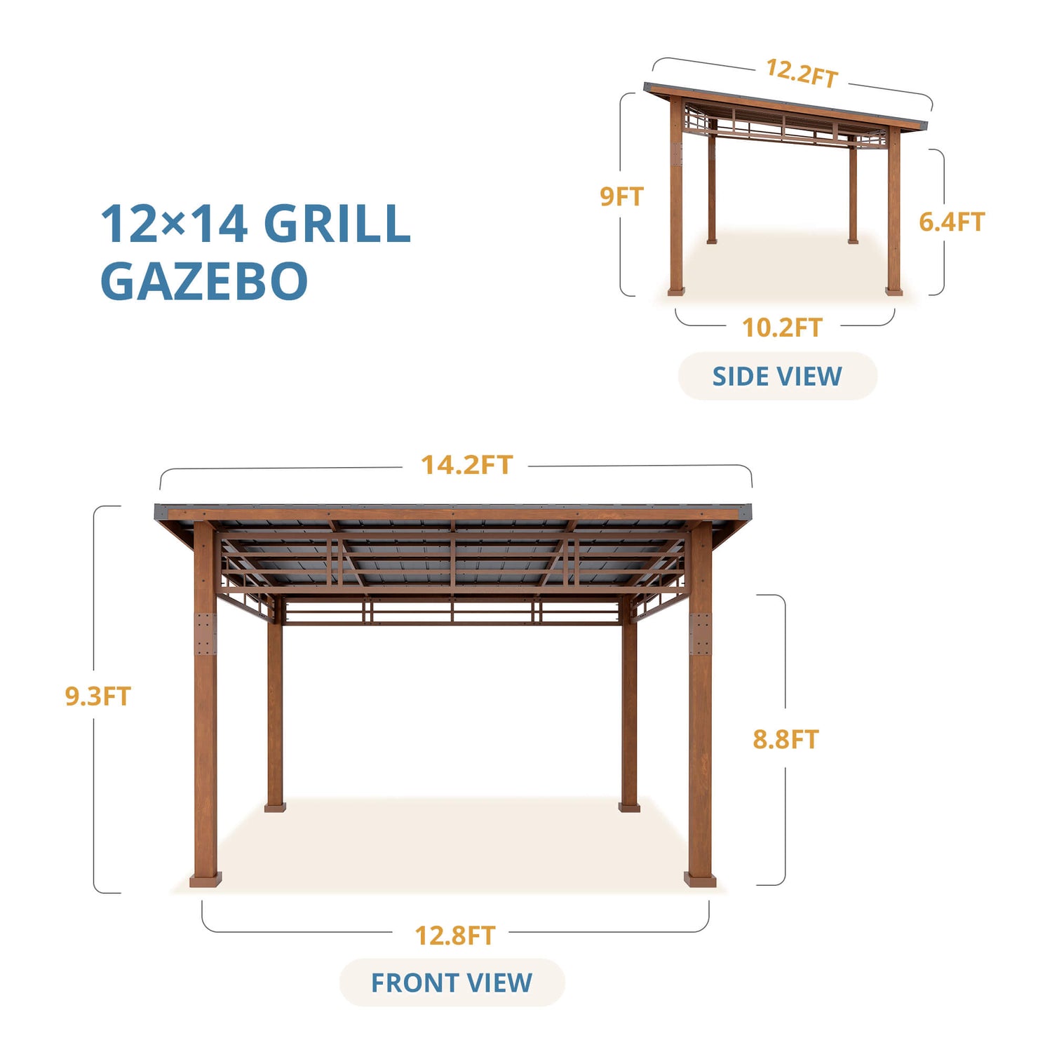- 12*14: 14.2FT W × 10.2FT D × 9.3FT H