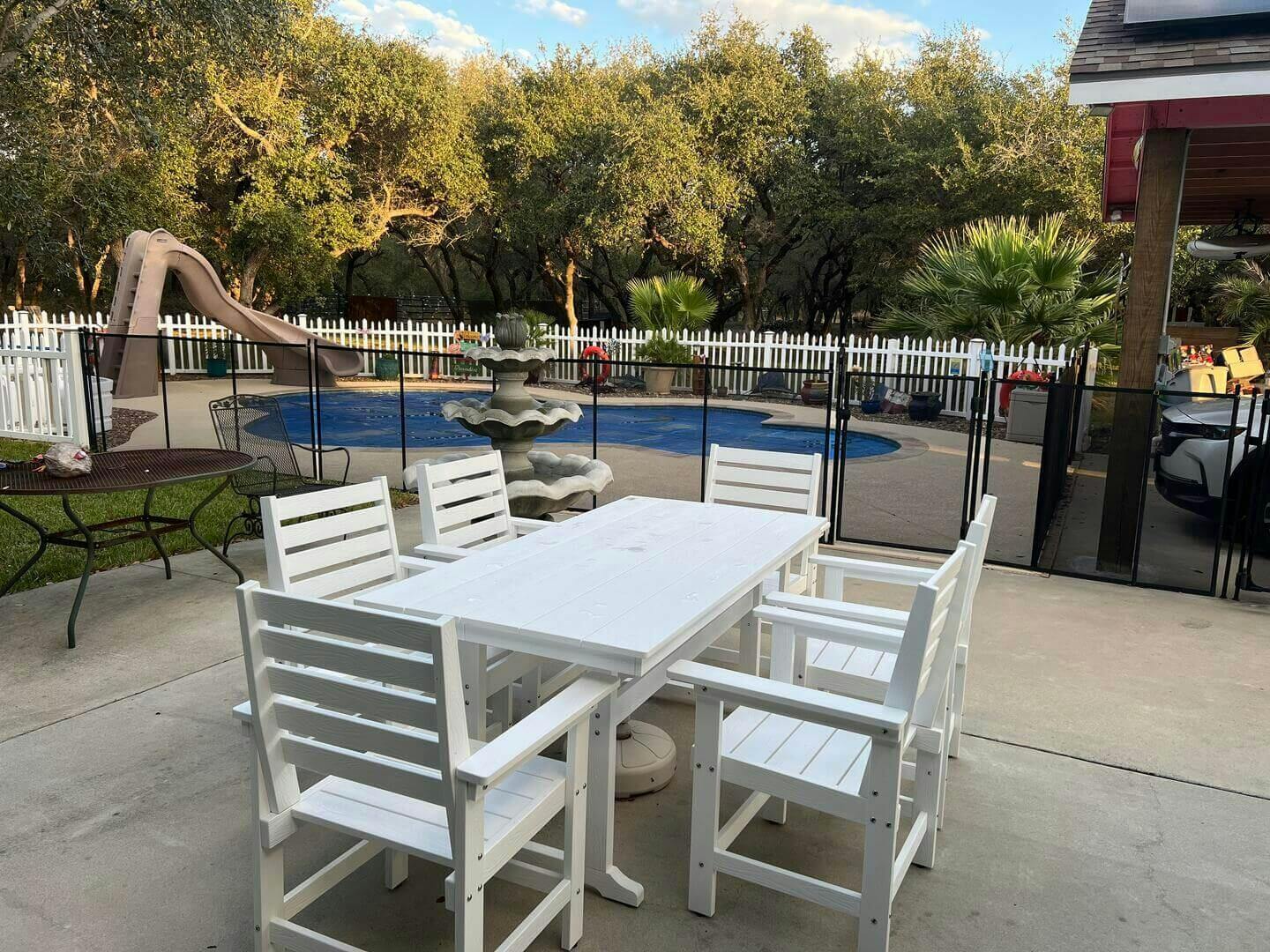 - All-Weather Applicable: The outdoor dining sets are made of HDPS material and 304 stainless steel screws. They are waterproof, sunproof, and windproof, ensuring durability without fading or peeling.