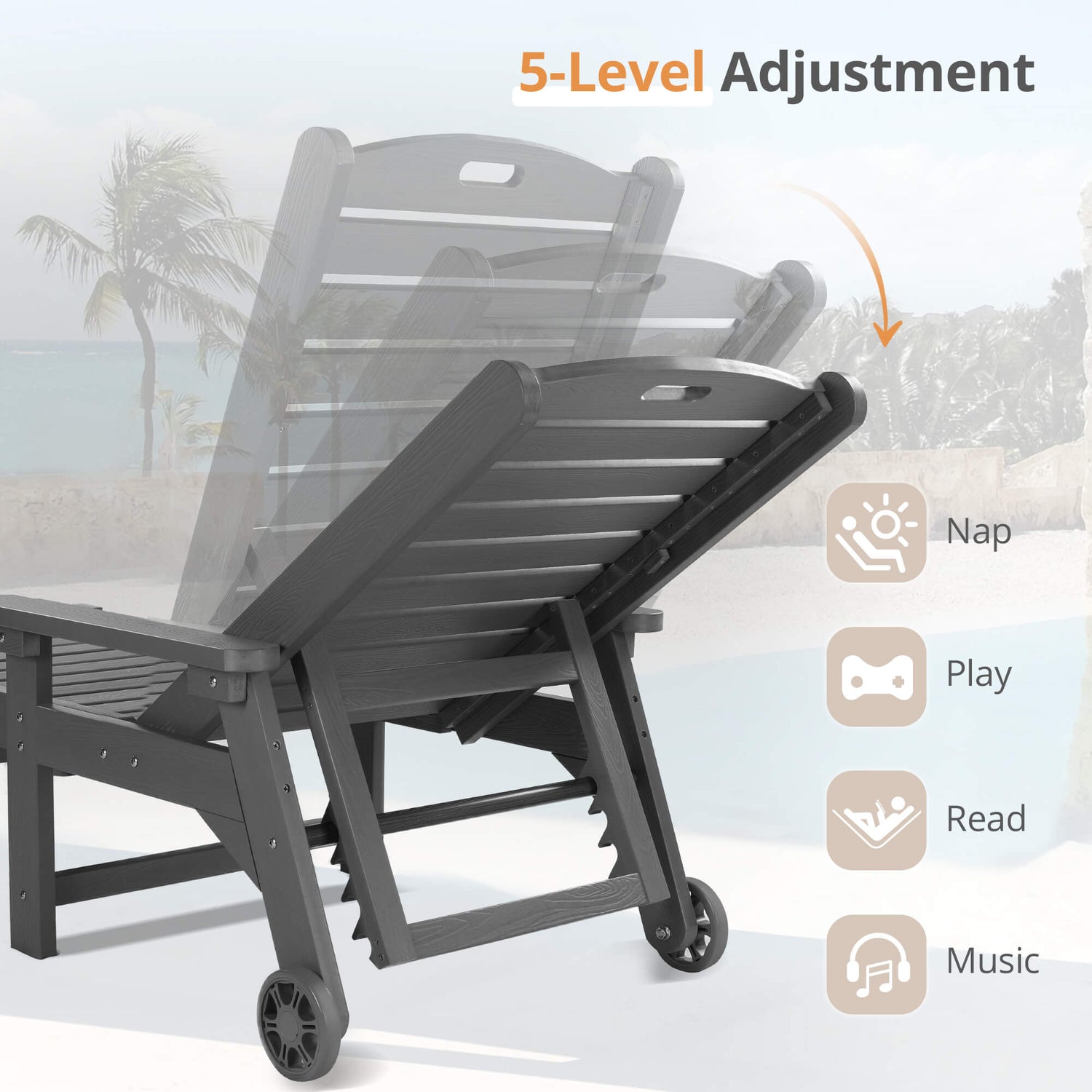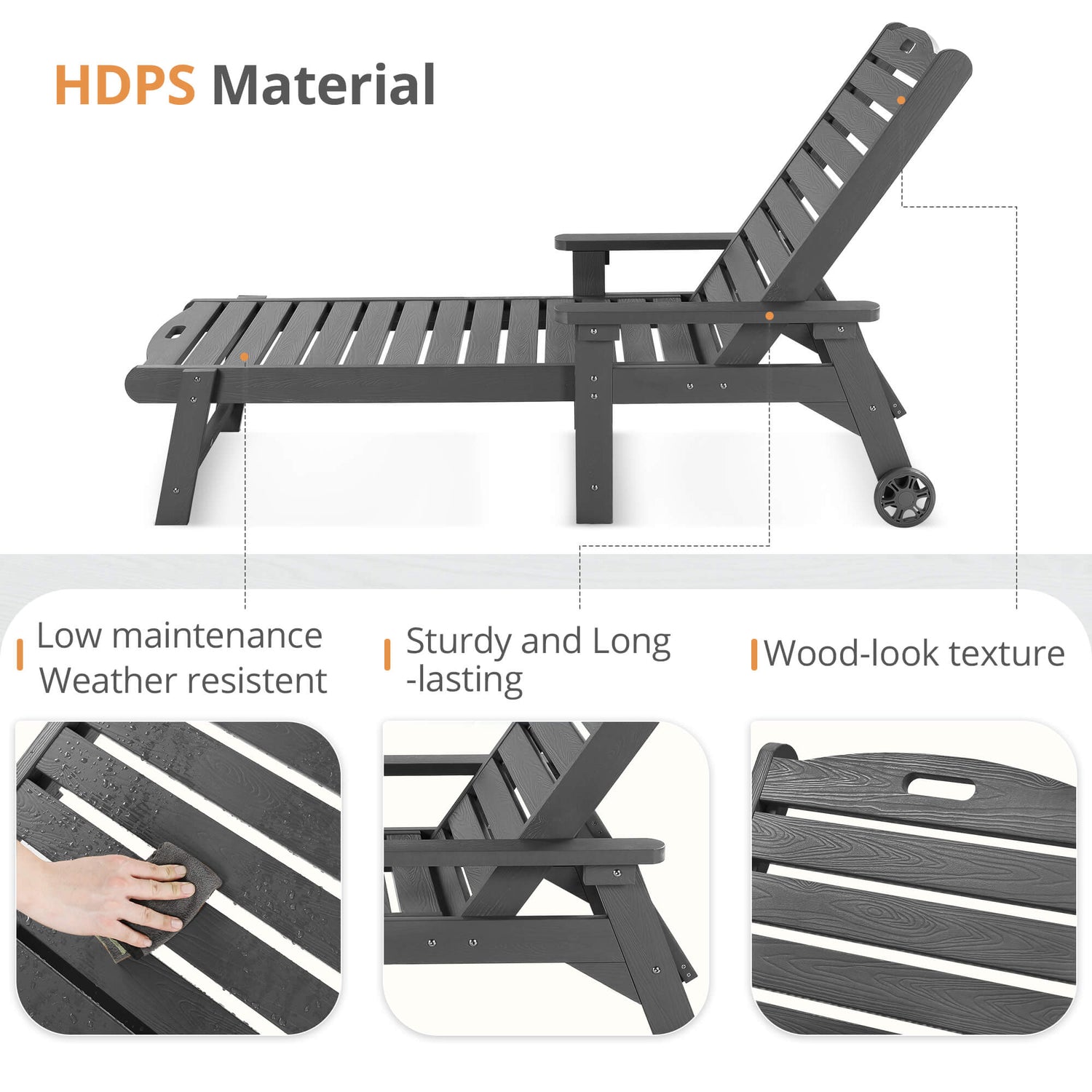 - Quality & Durable Material: The outdoor lounge chair is built to last with its high-quality poly lumber material that resists fading, cracking, and peeling, which is very durable and can withstand the test of outdoor environments.